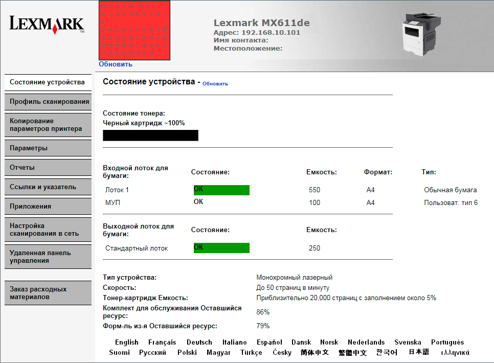 Скриншоты Lexmark MX611de