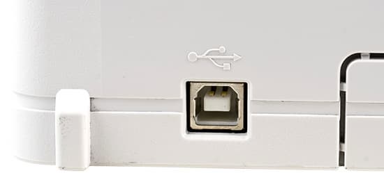 У принтера всего два разъема — для блока питания и USB, оба располагаются на задней панели.