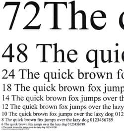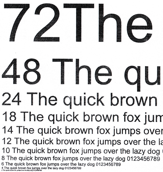 Тем не менее, несмотря на горизонтальные полосы, передача градаций серого на растяжках ровная, без резких переходов. Шрифты с засечками и без легко читаются вплоть до 4 кегля.