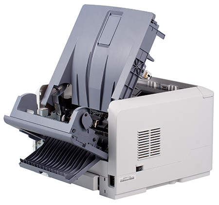 Аппаратная начинка принтера находится на добротном среднем уровне: процессор PowerPC 297 МГц и ОЗУ 64 МБ, с возможностью расширения до 320 МБ. При грамотном подходе эта связка может работать очень эффективно. Явно видно, однако, что переизбытка мощностей тут нет и неудачная программная часть может сильно снизить производительность. Принтером поддерживаются эмуляции PCL5e, PCLXL, Epson FX, IBM ProPrinter и PostScript3. Мы проводили тест в режимах PCL5e и PostScript3.