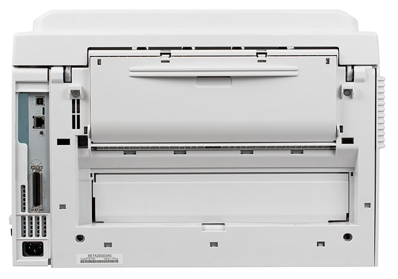Для связи с миром принтер оборудован портами Ethernet, USB и параллельным Centronics. Два последних в такой технике устанавливаются ради крайнего или очень специального случаев применения, но в подавляющем большинстве современных систем и приложений можно будет задействовать сетевой порт, что мы и сделали.
