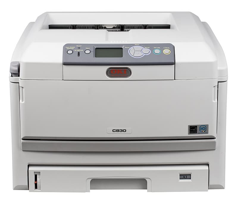 Но, тем не менее (а может и вопреки всему), принтер способен печатать в цвете с высоким качеством как на формате А4, так и на А3. Выдаваемый им цвет очень хорош, а текст — так тот просто великолепен. Если необходим цветной «лазерный» принтер формата А3 по цене, сравнимой с А4, и не слишком критична скорость печати — у светодиодного OKI C830 найдется, чем вас порадовать.