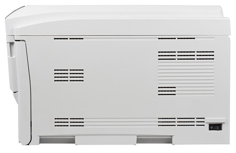 Скорость выхода страниц разного формата почти одинаковая. Лист формата А4, поданный в тракт широкой стороной, проходит его ровно в два раза быстрее, чем А3, идущий узкой стороной. Но никакого скоростного эффекта это не вызывает: принтер просто удлиняет паузу между листами.