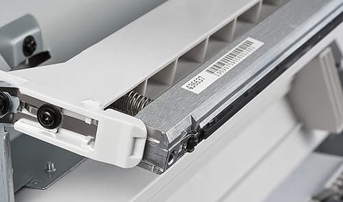 Заглянем под «капот». Верхняя крышка принтера откидывается вверх до предела, благодаря чему доступ ко всем элементам печатного тракта не вызывает никакого напряжения. При описанном выше качестве материалов необычен тот факт, что каждая светодиодная линейка упакована в собственный, цельнолитой и фрезерованный, алюминиевый кожух-экран. На фоне всего остального это выглядит настоящим символом надежности и недостижимого качества.