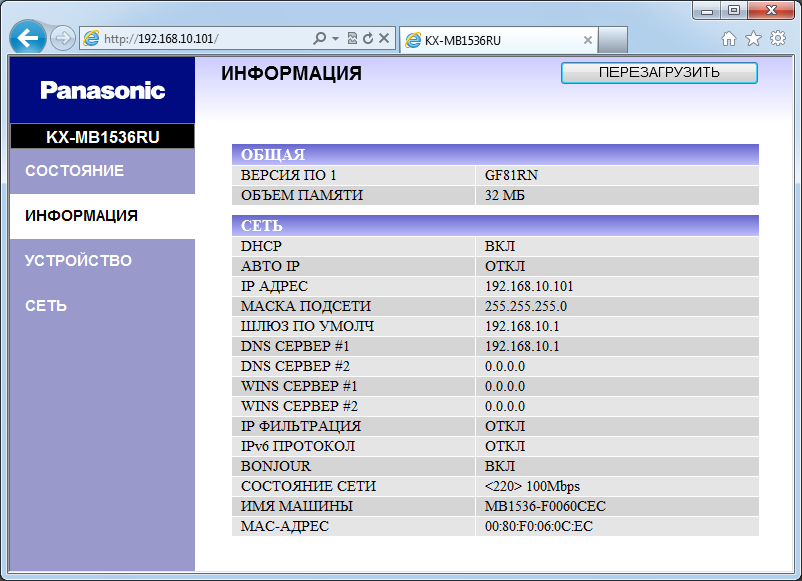 | Стандартные порты | USB 2.0 (Тип В) Ethernet 10/100 |