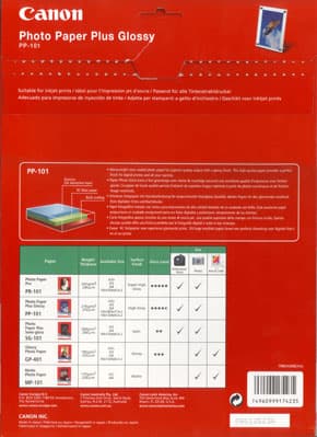 Начнем наше знакомство с оригинальной высококачественной фотобумаги (в нашем случае эталонной) Canon Photo Paper Plus Glossy 270г/м2 A4, имеющую дополнительную маркировку на картонном конверте-папке High Gloss PP-101.