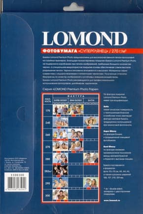 Прежняя упаковка этой фотобумаги была куда, как надежнее (мнение автора). В оформлении упаковки преобладает синий цвет, который можно назвать цветовым кодом. Вся серия высококачественной бумаги Lomond Premium имеет такую цветовую окраску, что придает ей дополнительную заметность и отличие от других типов носителей этого производителя. С оформлением и информацией содержащейся на упаковке можно ознакомиться на фотографиях.