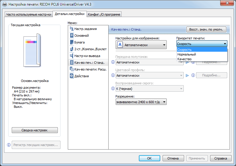 монохромное цветное (при 300 ppi) цветное (при 200 ppi)