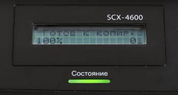 Экран устройства выполнен в лучших традициях кризисного отсутствия излишеств: две монохромные строки по 16 символов — это все, что способен предложить аппарат. Впрочем, хватает ведь для общения с МФУ, так что и не пожалуешься...