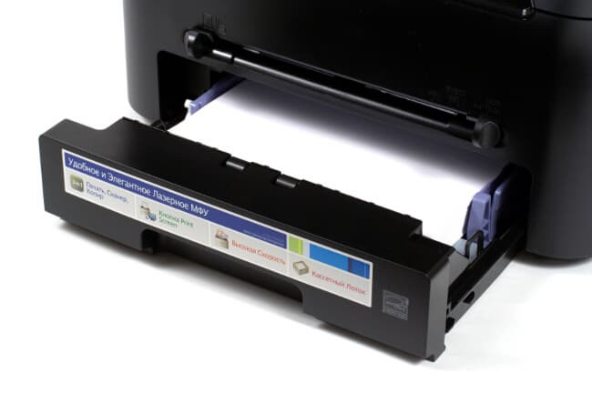 Перейдем к исследованию других частей аппарата. Входной лоток умещает 250 листов и располагается традиционно под принтером.