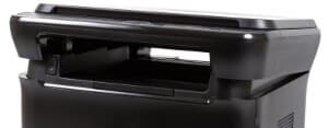 Выходной лоток имеет устройство, позволяющее поднимать крышку-сканер для достижения максимальной вместительности (80 листов). Если печатать предполагается небольшими стопками, имеет смысл «задвинуть» выступающую часть внутрь, чтобы МФУ стало еще компактнее.