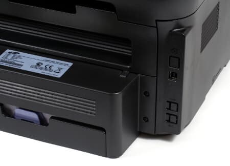 Никаких ухищрений типа картовода и разъема USB для прямой работы с флеш-накопителями мы не обнаружили. Впрочем, и для связи с внешним миром МФУ предложит один-единственный порт для кабеля USB.