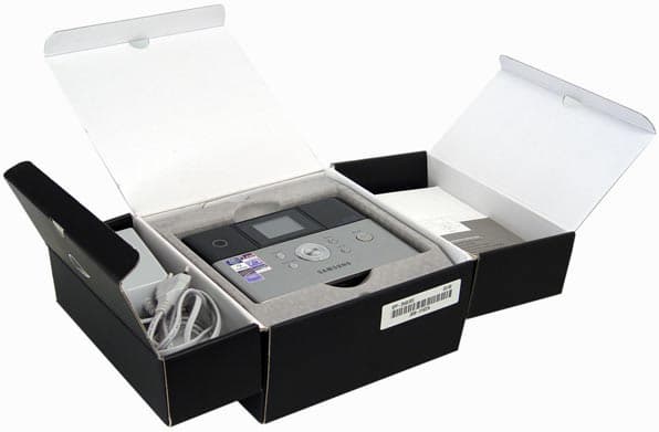 Открыв (раскинув) коробку, мы получаем три отделения, в каждом из которых находятся различные компоненты устройства: сам принтер, блок питания с сетевым проводом, интерфейсный кабель USB, комплект документации, диск с ПО и драйверами, лоток для бумаги, картридж и упаковка специальной фотобумаги для термосублимационной печати. Все находится на своих местах.