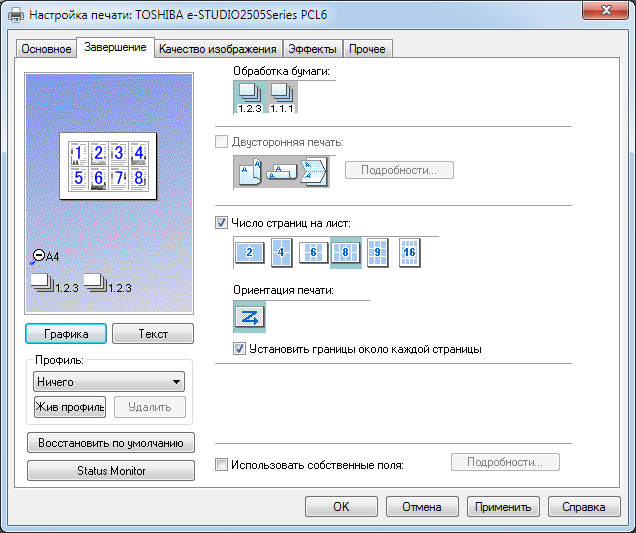| Печать текстового образца, тестовой полосы и фотографии | ||