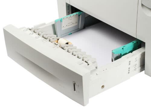 Лоток подачи бумаги расположен под принтером и вмещает 625 листов. Если этого окажется мало, принтер можно дополнить еще одним нижним лотком емкостью 1050 листов. Для складирования готовых отпечатков служит специальное углубление в верхней крышке, способное, по заявлению производителя, уместить до 250 листов. Устройство обоих лотков нам показалось весьма удачным: принтер вплоть до последнего листа безошибочно распознает бумагу в приемном лотке, а готовые документы и не пытаются выпасть или разлететься.