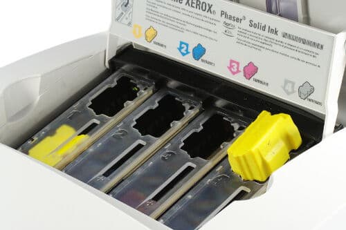 В основе твердочернильной печати лежит применение особых расходных материалов: пигментов, способных в обычных условиях сохранять твердое состояние. На ощупь каждый блок таких чернил напоминает твердую свечку, а внешне — кусок цветного пластилина. Чтобы убедиться в чернильной природе такого бруска, достаточно провести им по листу бумаги: пигмент оставит свой след. Те, кто в советское время имел счастье порисовать карандашами «Полицвет», ощутят едкий привкус дежавю.