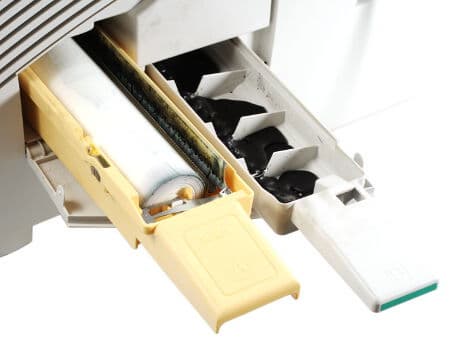 Конечно, хотелось бы рассказать, как принтер с помощью каждого такого бруска отрисовывает мельчайшими штрихами отправленную на печать картинку, но… все гораздо проще. Не зря при контакте с чернилами возникают мысли о «восковых» карандашах: в состав «чернил» входит полимер, во многом повторяющий его свойства, что позволяет из жестких брусков делать обыкновенную жидкость посредством банального нагрева до температуры чуть выше 60 °C. Кстати, именно эта простота технологии может сыграть с вами злую шутку: на готовые распечатки нельзя поставить даже горячую кружку со свежезаваренным чаем, иначе ваш текст поплывет, а картинки смажутся.