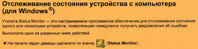 Одновременно отображается лишь пять кнопок, доступ к другим возможен с помощью треугольничков в нижней части этого окна. И это не только чисто информационное окно, клик по любой кнопке в нем запускает соответствующую функцию без использования панели управления сканера.