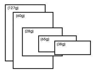 В спецификации обозначен предел в 413 г/м², столь плотной бумаги у нас не было — ближайшие образцы из имеющихся имели плотность 220 г/м².