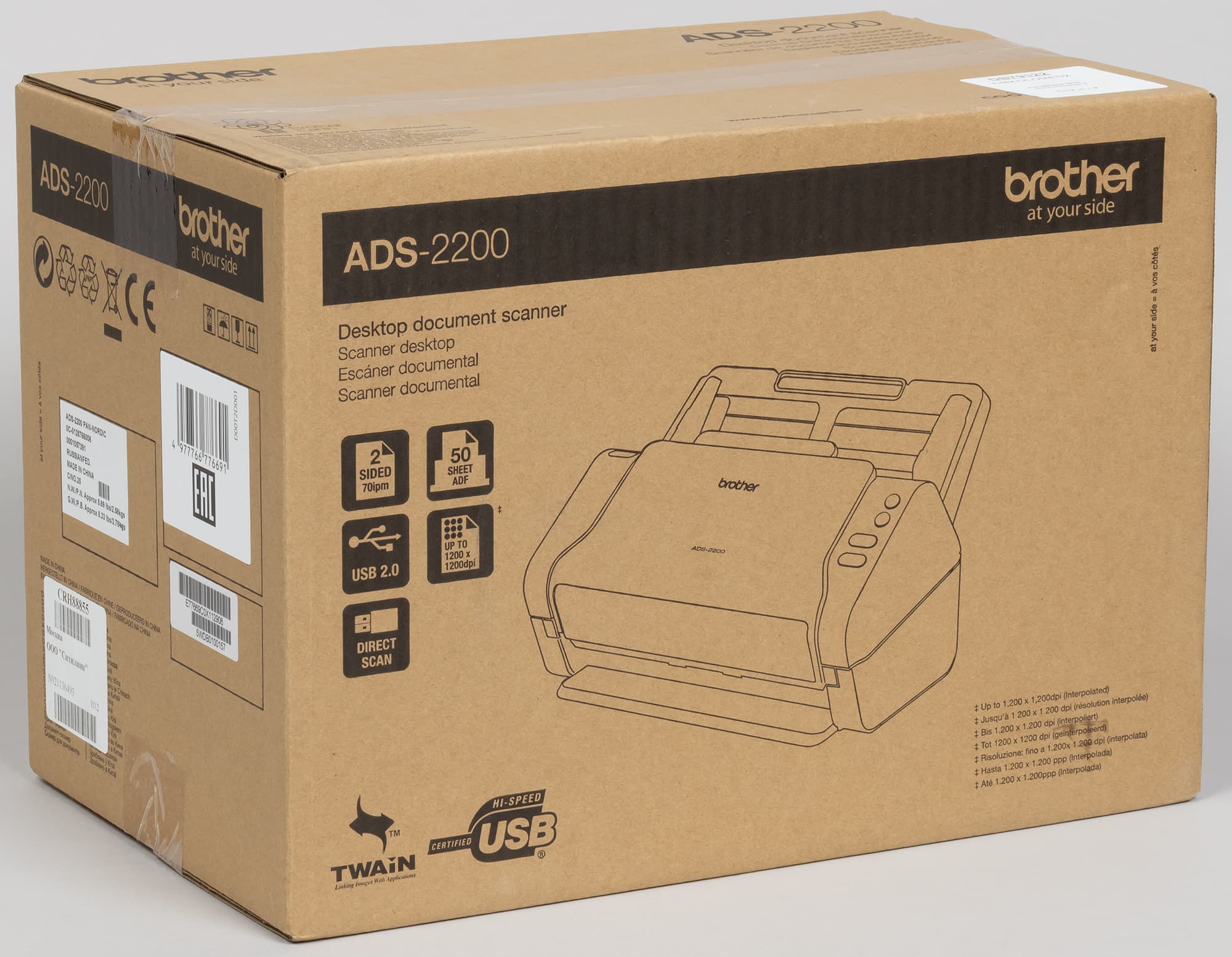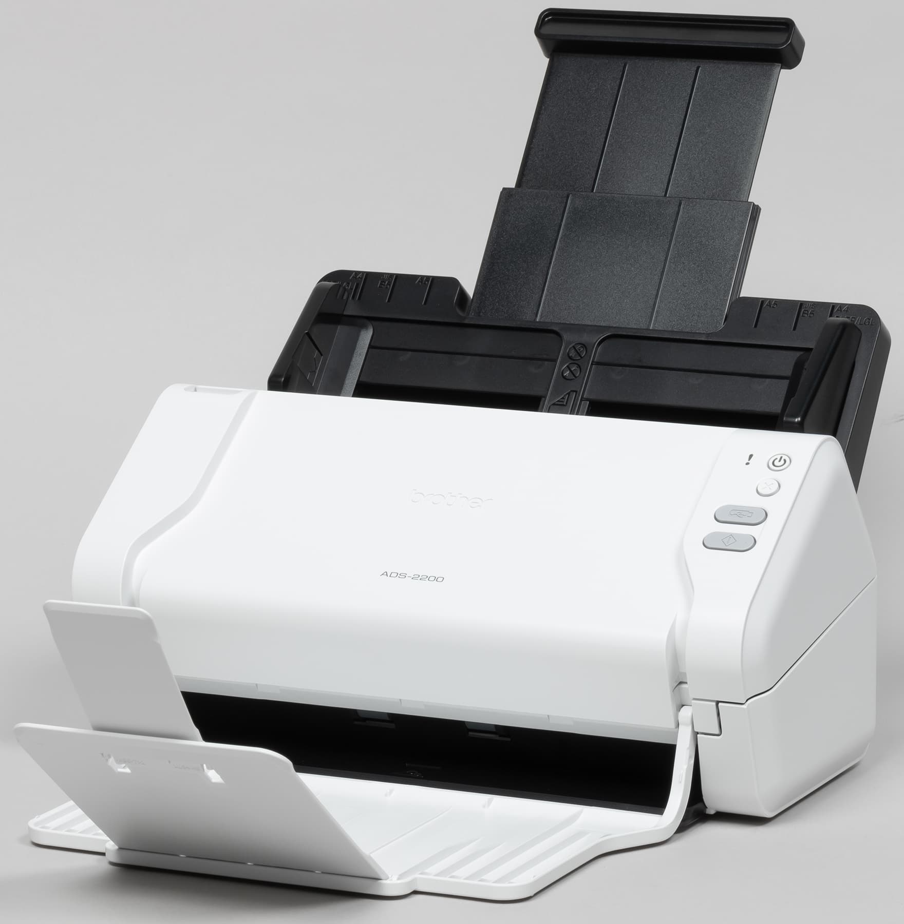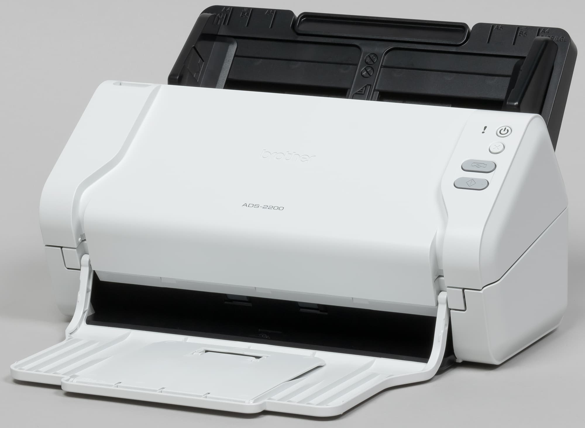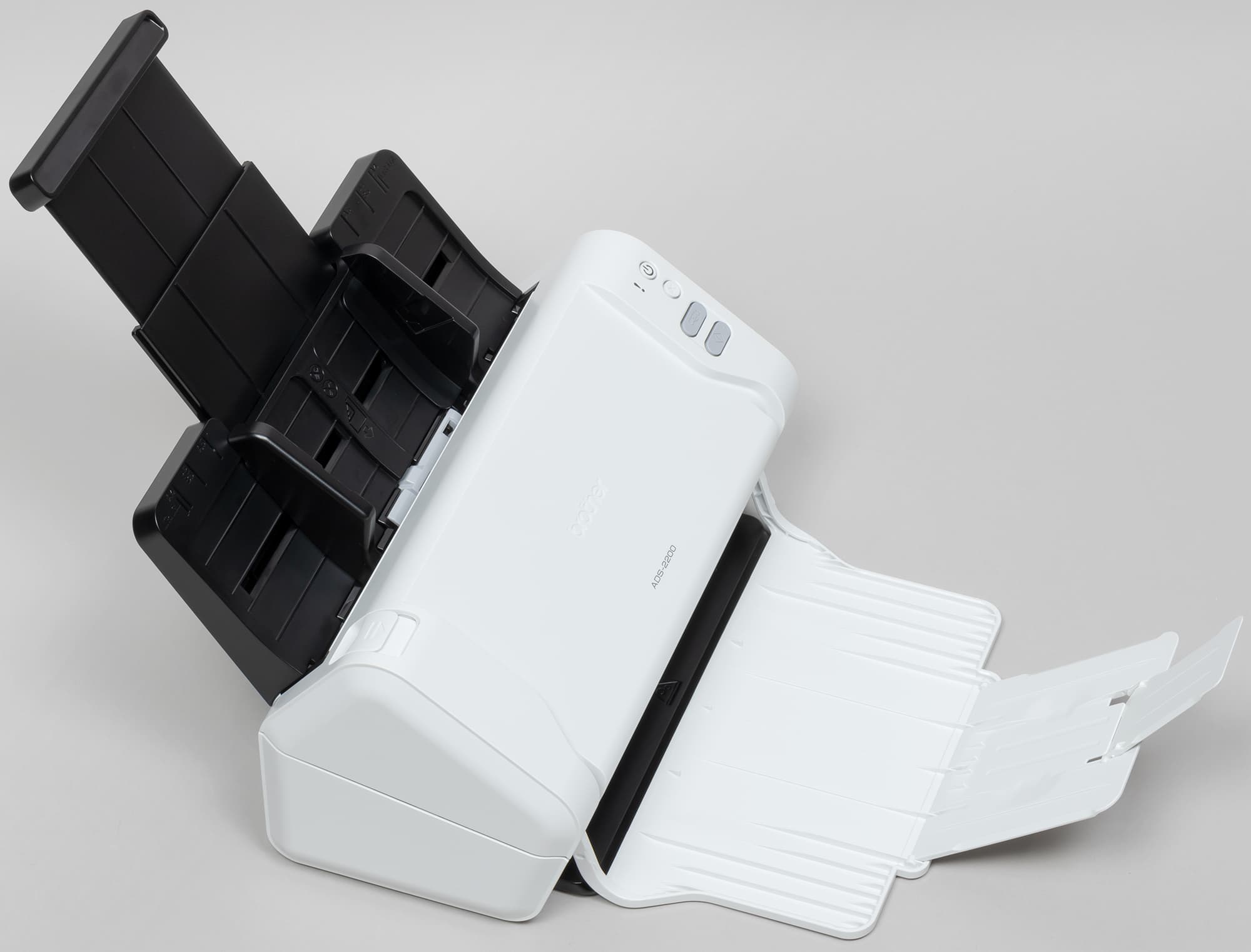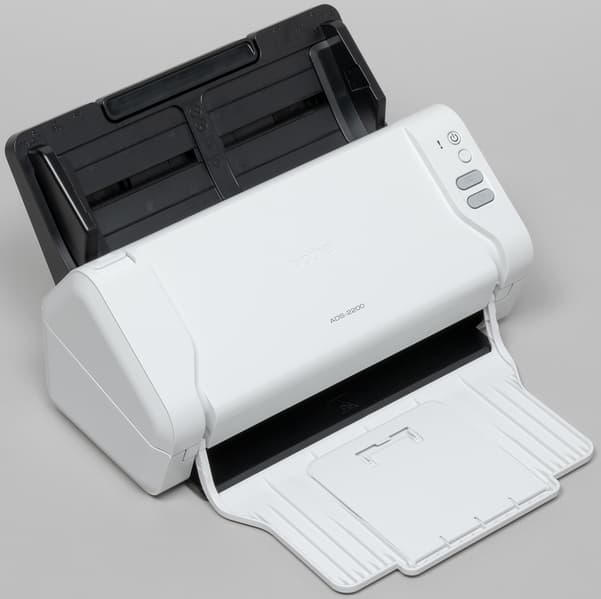 Аппарат Brother ADS-2200 относится к классу протяжных сканеров, которые иначе называют поточными или документ-сканерами: они способны работать только с отдельными листами бумаги, которые загружаются в автоподатчик и протягиваются перед неподвижной сканирующей линейкой.