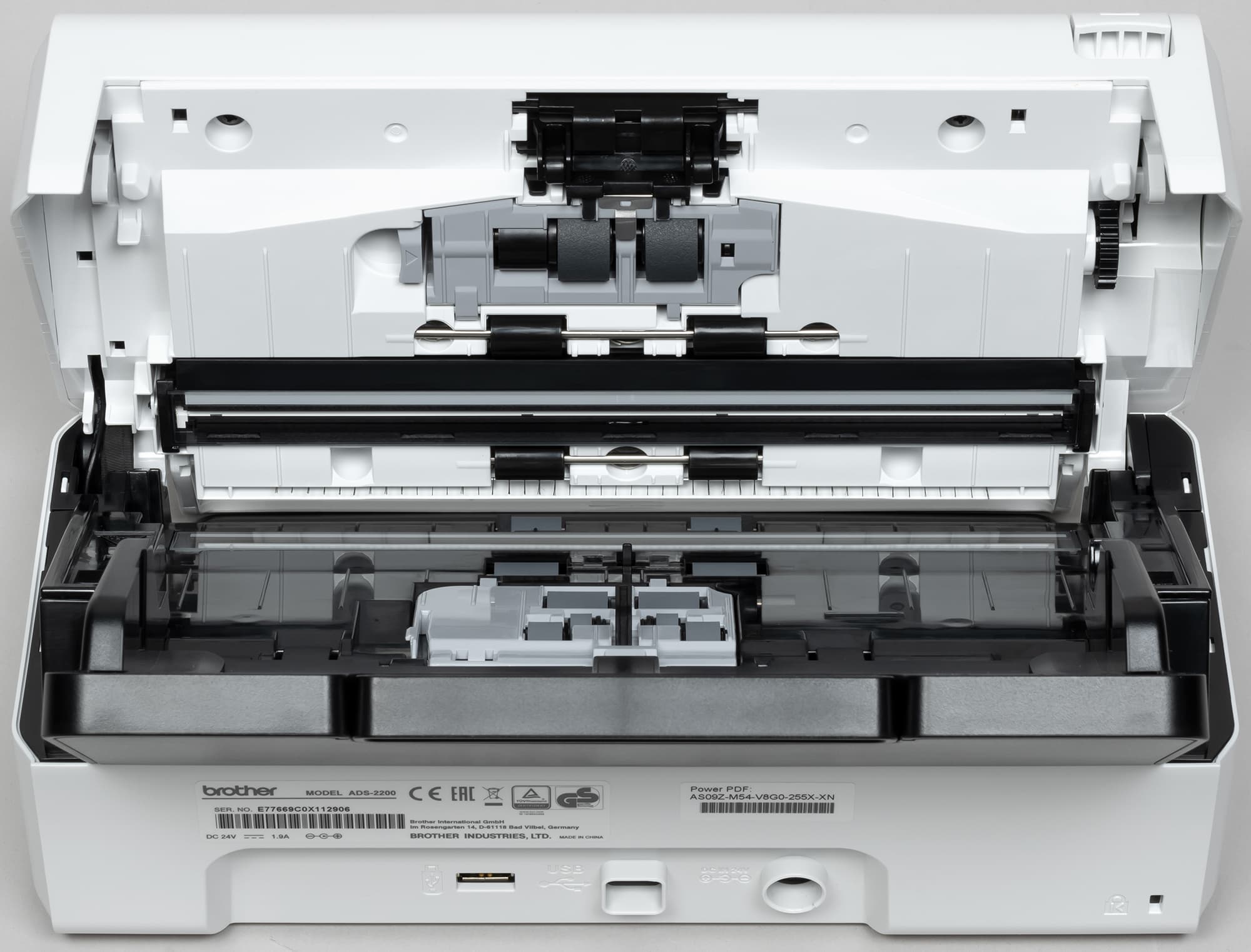 Вообще-то не очень понятно, почему у старших моделей настольных документ-сканеров Brother предел плотности почти вдвое выше (до 413 г/м²): изгиб оригинала в тракте что у них, что у ADS-2200/2700W практически одинаковый. Возможно, «виновата» иная конструкция роликов.