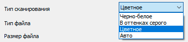 Режим цветности выбирается из трех вариантов (плюс автоопределение), разрешение — из пяти (от 100 до 600 dpi, то есть без интерполяции).