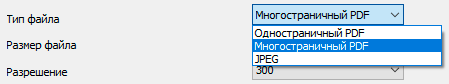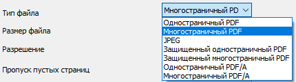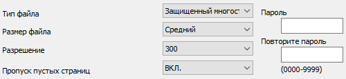 Возможных форматов сохранения семь, в основном это вариации PDF, а также JPEG. Если выбран защищенный PDF, появятся поля ввода пароля, который надо будет вводить для работы с файлом.