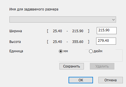 В частности, здесь есть возможность задать пользовательский размер документа.
