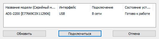 По запросу подключаем сканер (его питание должно быть включено) к порту USB нашего компьютера и подтверждаем обнаруженное устройство.
