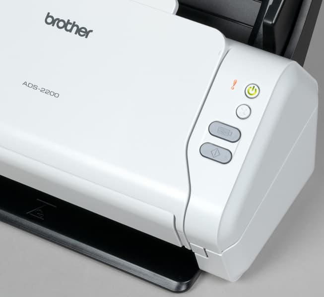 Brother ADS-2200 управляется с помощью всего четырех кнопок, а состояние отображается двумя светодиодными индикаторами.