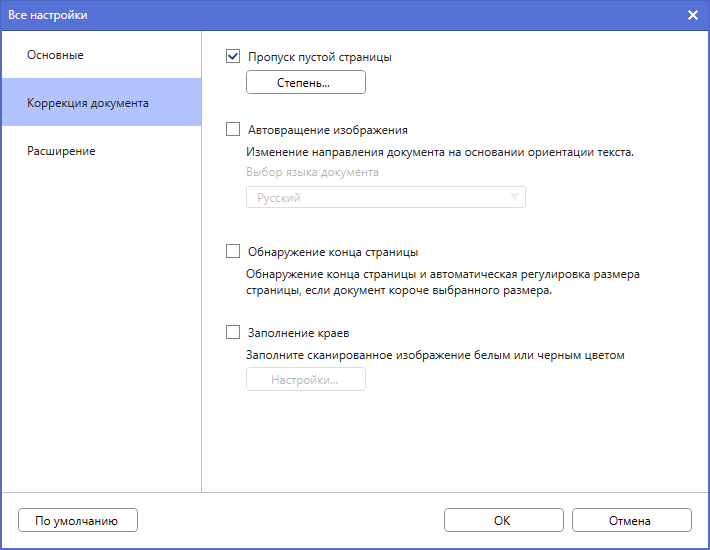 Есть еще два параметра: «Чувствительность пропуска пустых (страниц)» и «Корректировка автоопределения цвета» с наборами значений от минимального до максимального. Зачем они нужны — догадаться можно, но какой-либо конкретизации в справочных материалах нет, то есть если возникнет необходимость корректировки соответствующих функций, придется действовать методом проб и ошибок.