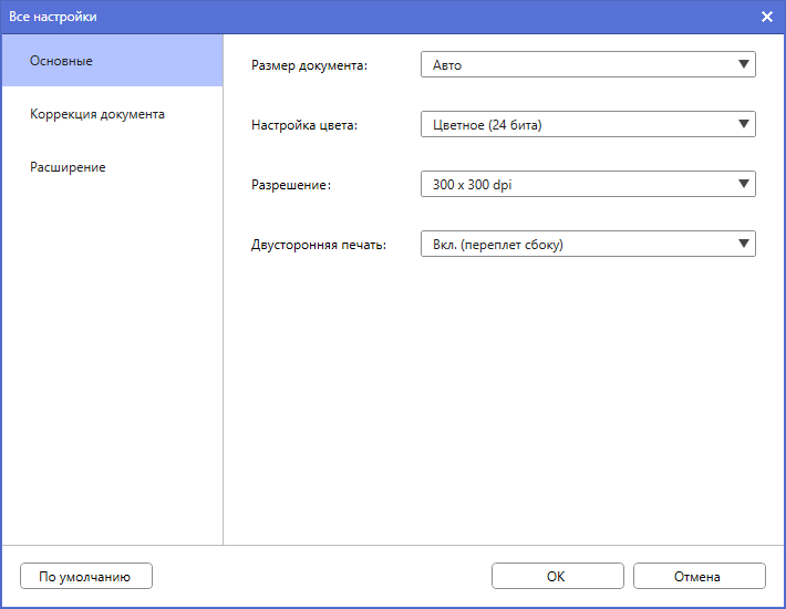 Если нажать иконку «Сканирование» в главном окне программы, открываются настройки — те же, что описаны выше для рабочего процесса.