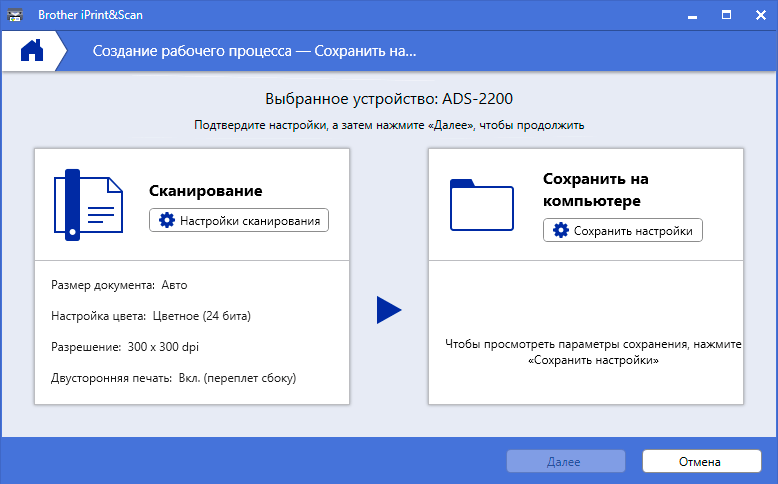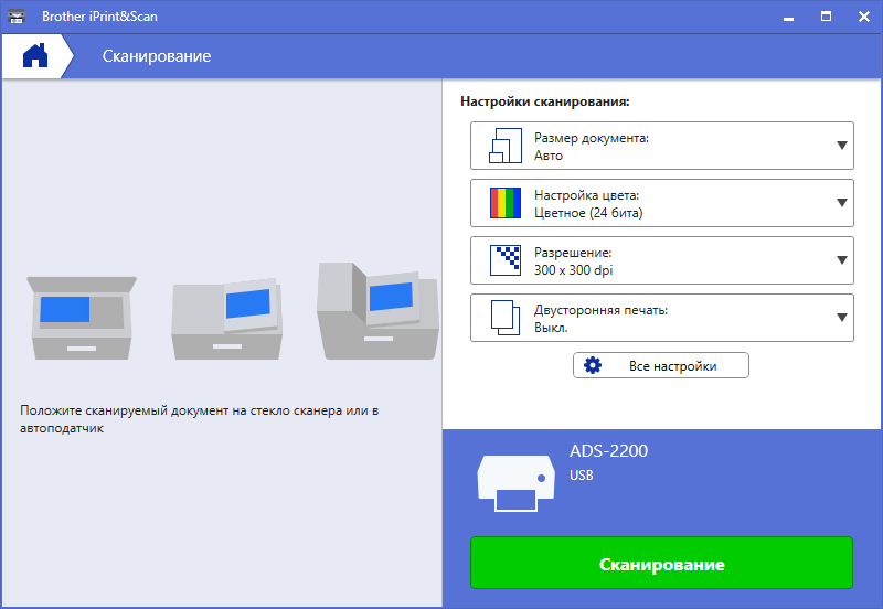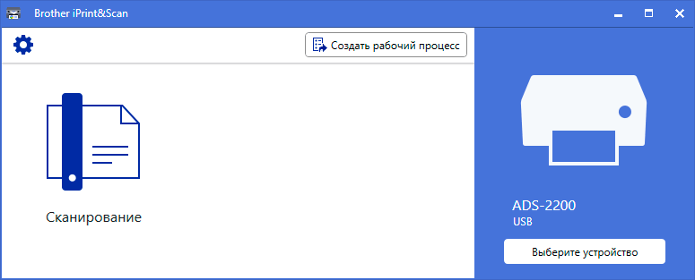 Поскольку ADS-2200 — это сканер, а не МФУ, от Print&Scan для него остается только Scan.