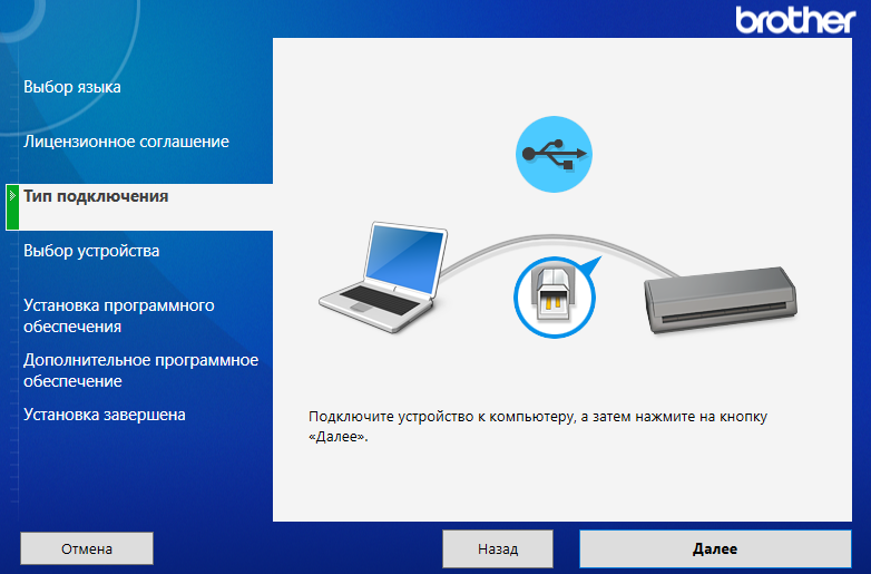 Как и для большинства USB-устройств, не нужно торопиться соединять сканер и компьютер USB-кабелем, это делается по запросу программы установки.