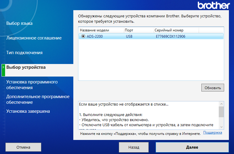 Затем следует запрос установки дополнительного ПО Brother. На данном этапе от этого мы отказались.