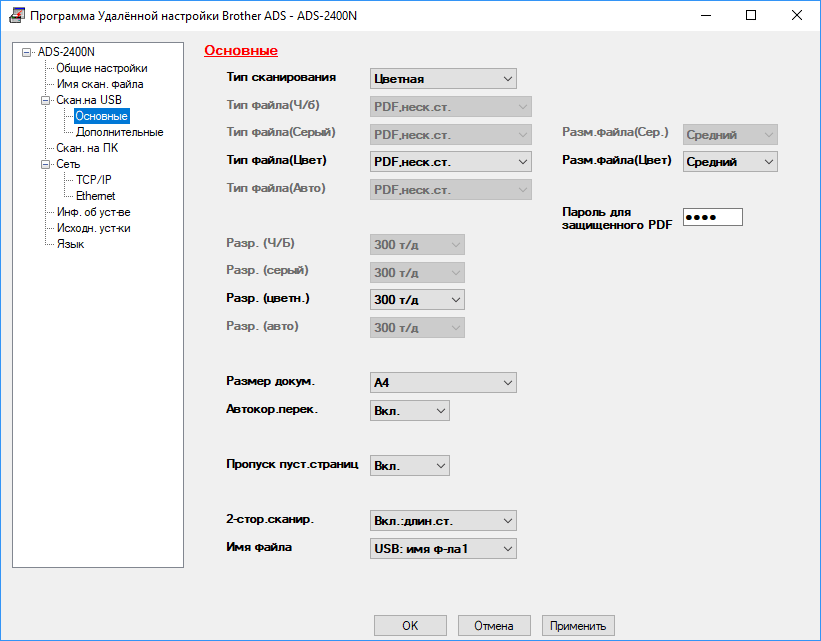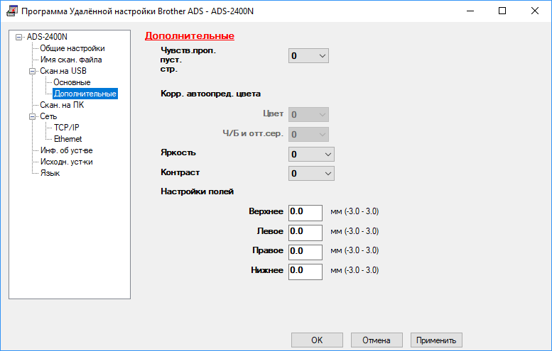 Если выбрать «Сервис — Удаленная настройка», открывается окно программы удаленной настройки Brother ADS с многочисленными установками.