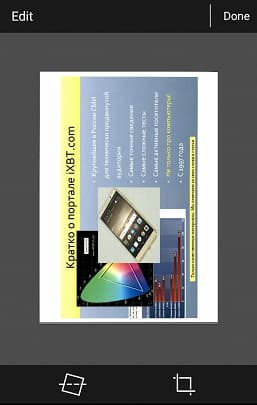 Есть и кое-какие возможности редактирования полученных сканов: обрезка и поворот.