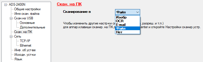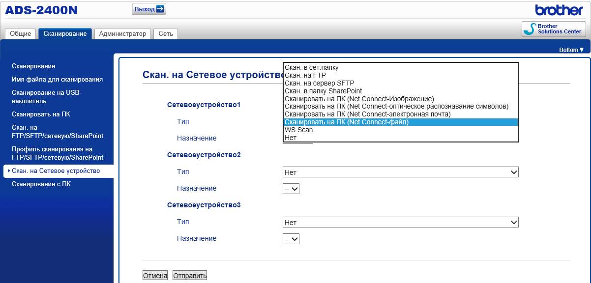 Варианты сканирования при сетевом подключении
