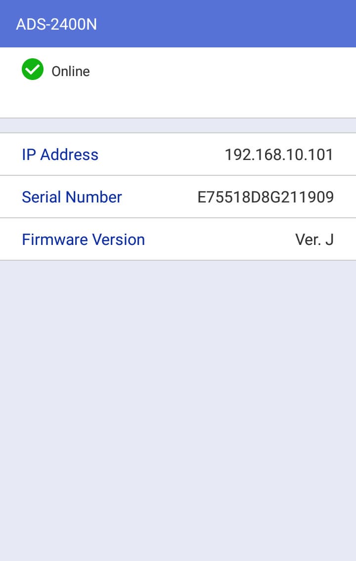 Какие-то настройки сканера через это приложение не производятся, но можно воспользоваться веб-интерфейсом, открыв его в браузере мобильного устройства.