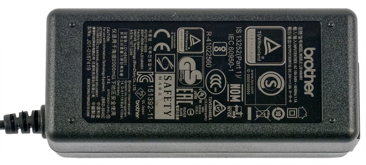 Помимо самого аппарата и адаптера питания (вход AC 100-240 В, 50/60 Гц, 1,1 А; выход DC 24 В, 1,9 А), в коробке находятся съемный подающий лоток, кабель USB 2.0 для локального подключения к компьютеру, а также печатная документация и компакт-диск с ПО.