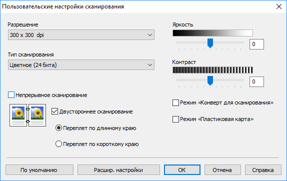 Здесь можно задать самые важные параметры — размер оригиналов, режим цветности, одно- или двустороннюю обработку. Как ни странно, про разрешение никаких упоминаний нет.