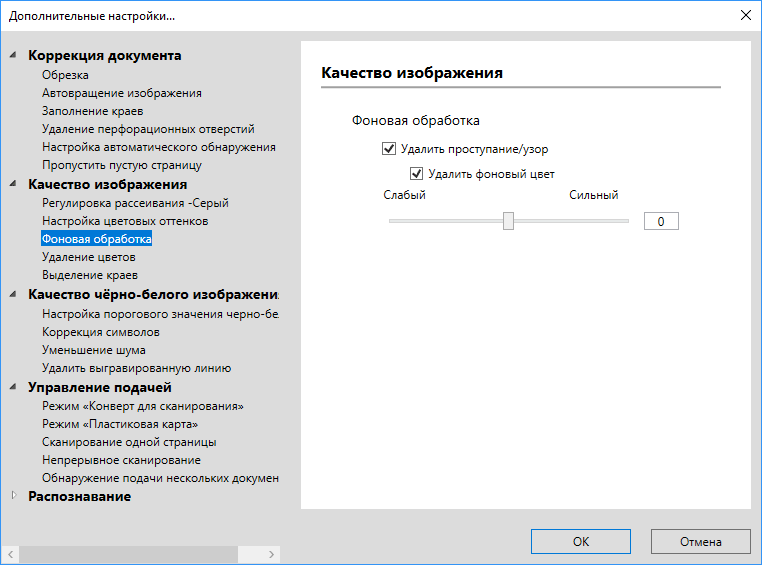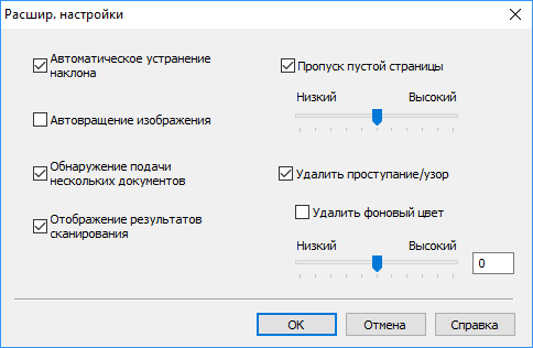 Прилагаемое ПО обеспечивает автоматическую настройку формата сканирования, устранение перекосов, удаление пустых страниц, автоматическое распознавание цветов, коррекцию нечетких знаков, коррекцию тона цвета, заливку/выделение кромок, настройку полей, удаление обнаруженных отверстий, сканирование по одному листу, удаление разлиновки, распознавание конца страницы и другие полезные функции.