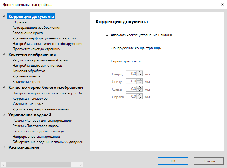 Здесь надо отметить: при подаче столь малых оригиналов длинной стороной очень многие из них проходят через сканер с значительным перекосом, который на получаемом скане не устраняется установкой «Автоматическое устранение наклона» в дополнительных настройках TWAIN-драйвера. В таких случаях следует подавать короткой стороной, поменяв установки размера: