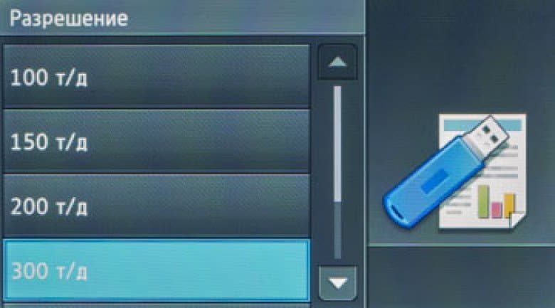 При сохранении сканов на USB-носитель для ряда форматов (JPG, PDF) можно задать и степень сжатия путем выбора в настройках размера файла — малого, среднего или большого. Понятно: чем больше размер, тем выше качество сохраняемого изображения, но больше время, необходимое для записи на флешку. Мы опробовали для одного и того же набора оригиналов два варианта размера, малый и большой, время обработки отличалось примерно в полтора раза, а файл — в четыре раза.