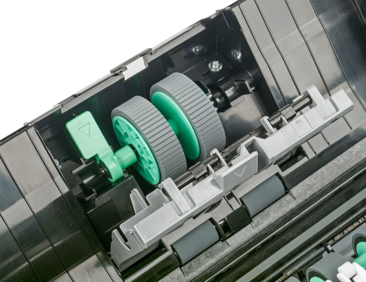 Всё это нужно для периодического обслуживания: после прохождения через сканер многих тысяч документов внутри неизбежно будет накапливаться бумажная пыль, ухудшающая качество сканирования, да и поверхности роликов будут загрязняться, что может вызвать сбои в подаче.