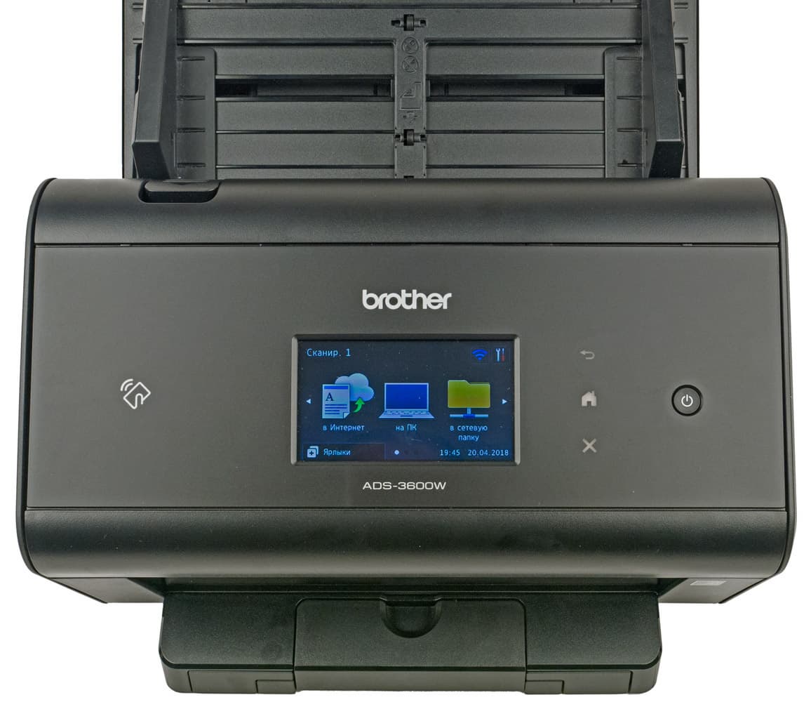 У ADS-3600W есть цветной сенсорный ЖК-экран с диагональю 9,3 см и четыре кнопки. Поэтому очень многие настройки можно осуществлять непосредственно с панели управления сканера, в том числе оперативно, не отходя от сканера.