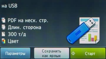 - выбираем «Сканирование на USB» и задаем параметры;