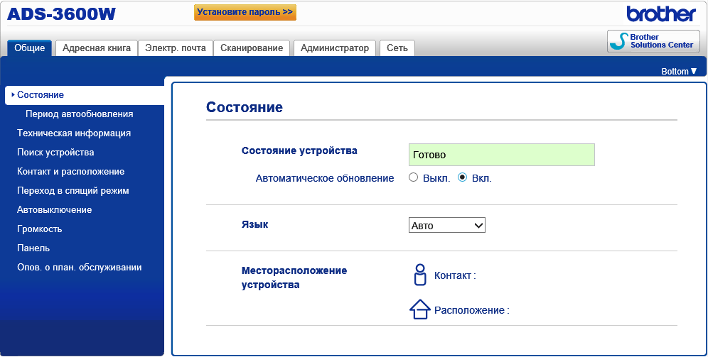 Если выбрать «Сервис — Удаленная настройка», открывается окно программы удаленной настройки Brother ADS с многочисленными установками.