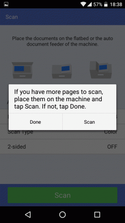 Жмем экранную кнопку Scan и ожидаем окончания процесса, в конце которого появляется запрос о дальнейших действиях: отсканировать еще набор документов или завершить текущий сеанс.