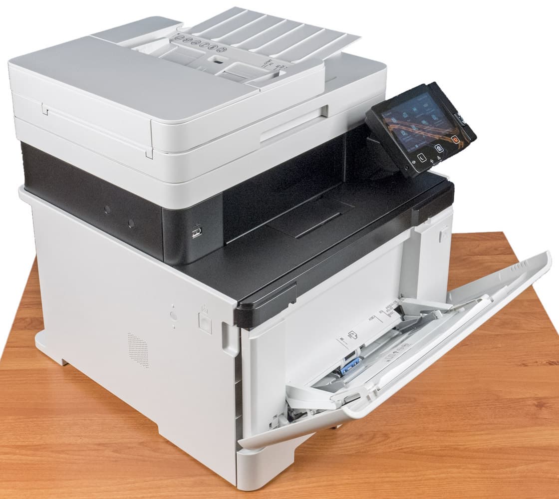 Под хорошим оснащением подразумевается следующее: помимо ставшего уже стандартом дуплекса (устройства автоматической двусторонней печати), аппарат имеет три интерфейса — локальный USB и два сетевых, проводной и беспроводной, а также порт для подключения USB-носителей, с которых можно печатать и на которые можно сохранять сканы в автономном режиме. Мобильные устройства могут взаимодействовать с МФУ еще и в режиме прямого подключения Wi-Fi или с использованием NFC.